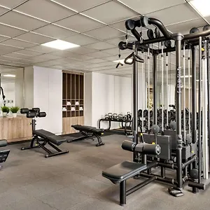 This Dubai hotel has a white sand beach area with lounge chairs. There is a fitness room with a wide range of sports.